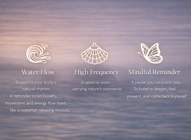 Water doesn’t rush, yet it transforms everything it touches. Seaquency is inspired by the ocean’s natural frequency — a reminder that the body already knows how to release tension, when we allow it to slow down. Worn close to the heart as a mindful reminder to breath.