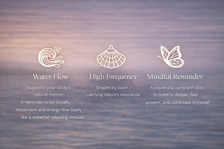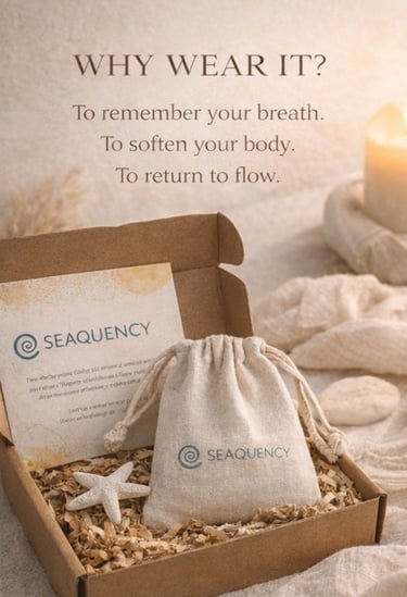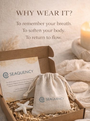 Water doesn’t rush, yet it transforms everything it touches. Seaquency is inspired by the ocean’s natural frequency — a reminder that the body already knows how to release tension, when we allow it to slow down. Worn close to the heart as a mindful reminder to breath.